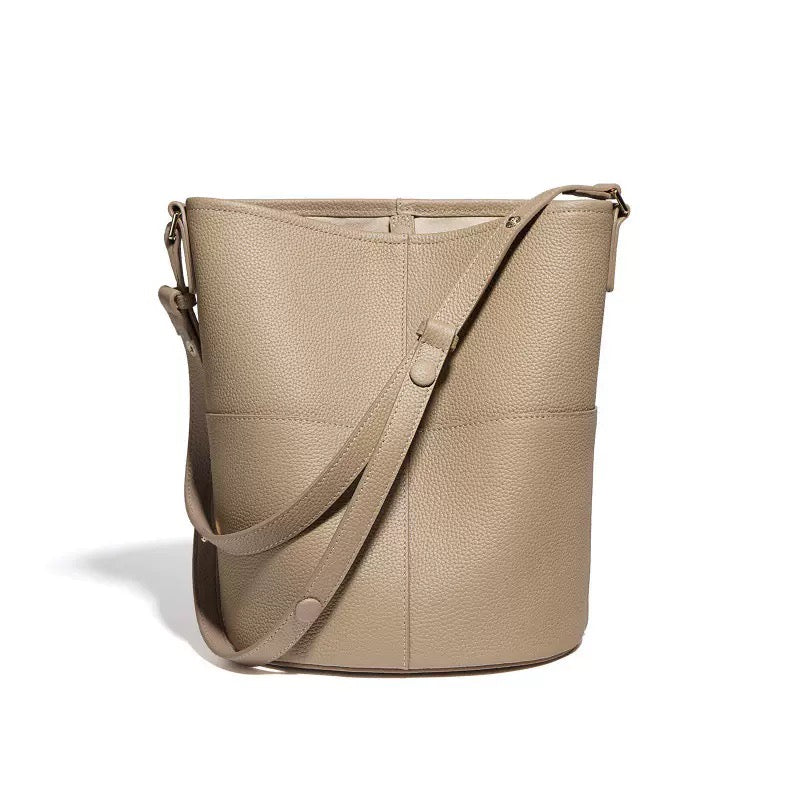 LOMÈNNA Togo Arc Almond Beige distills the essence of everyday luxury. Crafted from supple TOGO cowhide with natural grain, this bucket silhouette blends relaxed form and precise structure — soft to the touch yet upright in posture.